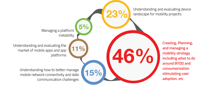 A survey found that 46% of the businesses cited “creating, planning, and managing an enterprise mobility strategy” to be their top mobility challenge. In contrast, technical challenges were rated significantly lower.